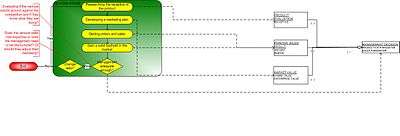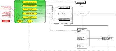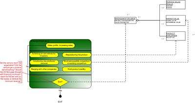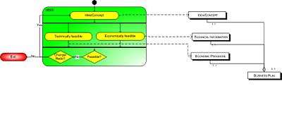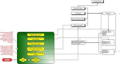 The number and type of stages may be extended by the VC firm if it deems necessary; this is common. This may happen if the venture does not perform as expected due to bad management or market conditions (see: Dot com boom). The following schematics shown here are called the process data models. All activities that find place in the venture capital financing process are displayed at the left side of the model. Each box stands for a stage of the process and each stage has a number of activities. At the right side, there are concepts. Concepts are visible products/data gathered at each activity. This diagram is according to the modeling technique developed by Sjaak Brinkkemper of the University of Utrecht in the Netherlands.