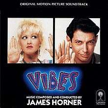 Vibes is the original motion picture soundtrack album for the film with score by James Horner. The soundtrack does not contain the song "Hole in My Heart (All the Way to China)" by Cyndi Lauper and written by Richard Orange. The song was released as a 7" and 3" single.