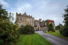 The current castle is a Gothic-style house which was built in 1895 for Gerald Purcell-Fitzgerald (1865-1946)[3] which incorporates the fabric of an earlier (pre-1845) house, and parts of the medieval (pre-1645) tower-house. The designs were prepared by Romayne Walker and supervised by Albert Murrary (1849 - 1924). The construction is in unrefined rubble stone with fine cut-stone quoins and window frames, topped with Irish-style battlements.[4]